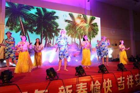 今年的新春團(tuán)拜會(huì)打破傳統(tǒng),模式創(chuàng)新,整個(gè)流程采用LED大屏幕的全新形式,把新春大拜年、工作總結(jié)、頒獎(jiǎng)典禮、文藝表演、幸運(yùn)抽獎(jiǎng)貫穿其中,別開生面,呈現(xiàn)出全新模式的視聽享受。本次團(tuán)拜會(huì)由公司黨、政、工合力籌劃,提前一個(gè)月組織,特別是各部門籌備的文藝節(jié)目,為干部員工們獻(xiàn)上一場(chǎng)精彩紛呈的年會(huì)盛宴。佳樂公司喜慶開場(chǎng)舞蹈,南國(guó)風(fēng)情的《草裙舞》、民樂合奏、薩克斯組合、現(xiàn)代拉丁舞等精彩節(jié)目以及激動(dòng)人心的幸運(yùn)大抽獎(jiǎng),讓團(tuán)拜會(huì)氣氛熱烈,高潮不斷。2015年新春團(tuán)拜會(huì),讓人意猶未盡,更是盛況空前,引用時(shí)下最時(shí)尚的用語(yǔ),那就是“高、大、上”,干部員工紛紛點(diǎn)贊,堪稱美大康版“春晚”。